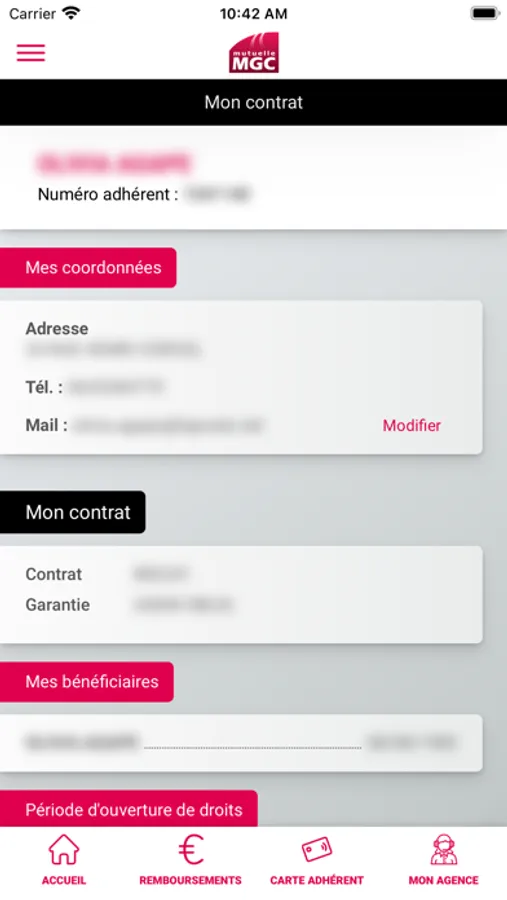 - Votre carte d’adhérent dématérialisée et son datamatrix pour pouvoir justifier à tout moment de vos droits auprès des professionnels et établissements de santé