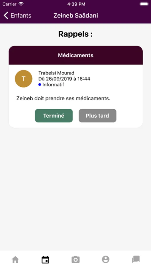 - Les parents peuvent émettre des rappels concernant leurs enfants, aux instituteurs via un calendrier partagé.