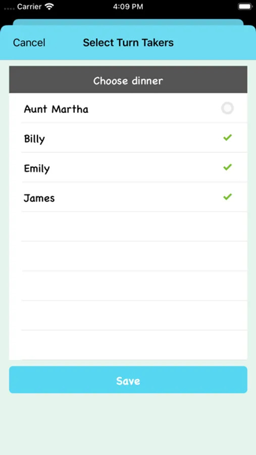 Need a quick fix to decide whose turn it is!? Use the Random Turn feature to choose someone at random fast!