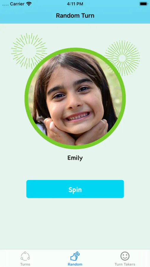 3. Go to the Random tab and tap Spin to to choose a Turn Taker at random. It really is random, we promise!!