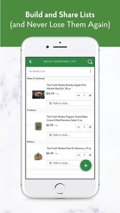 Discover all your favorite foods, all in one place! Browse your local store’s items, from exceptional meat and seafood to seasonal produce, easy meals and entertaining essentials. Build shopping lists, check out weekly specials and more. You’ll never shop The Fresh Market the same way again!