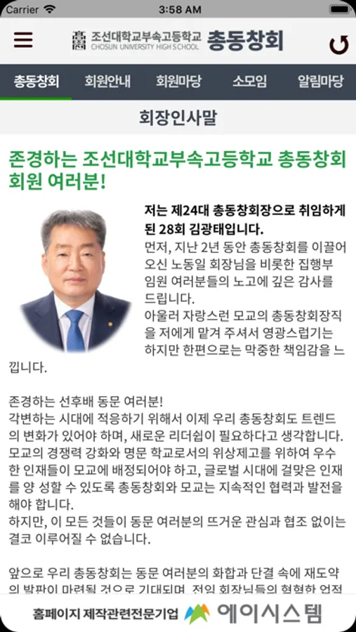 조선대학교부속고등학교 총동창회 어플은 회원들간의 원할한 커뮤니케이션과 정보를 공유하고 총동창회의 정보를 공유하기 위해 개발되었으며,
