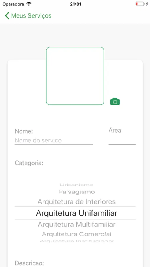 With it, you provide an image of the space to be worked on, the type of project, the area, a brief description and record the service that architects find allowing negotiation according to their needs.