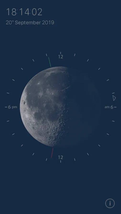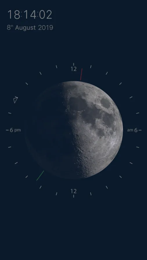 Swipe down again to see the MoonClock in 3d, pan around the moon up to 160degrees, tap away from the moon to reset the view.
