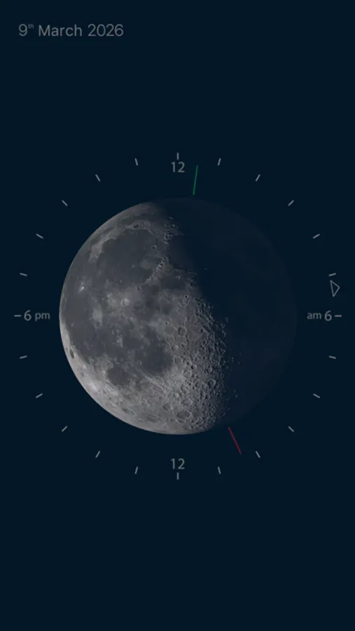 View all the moon's properties in one simple graphic, using your location MoonClock calculates the moon's appearance and is constantly updated in real-time.