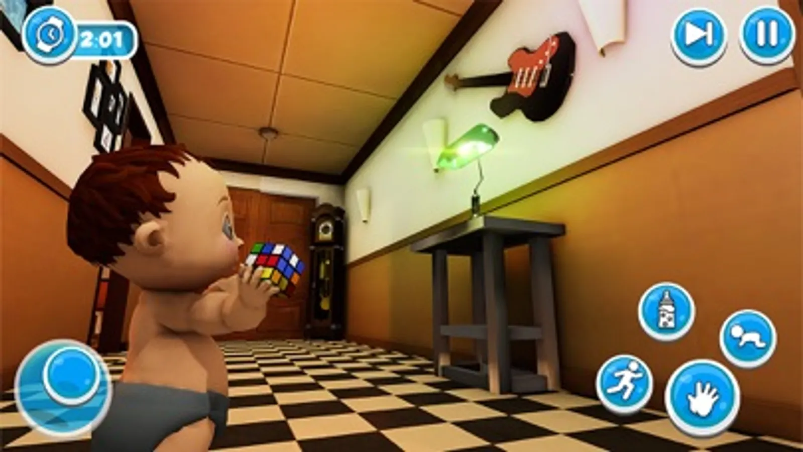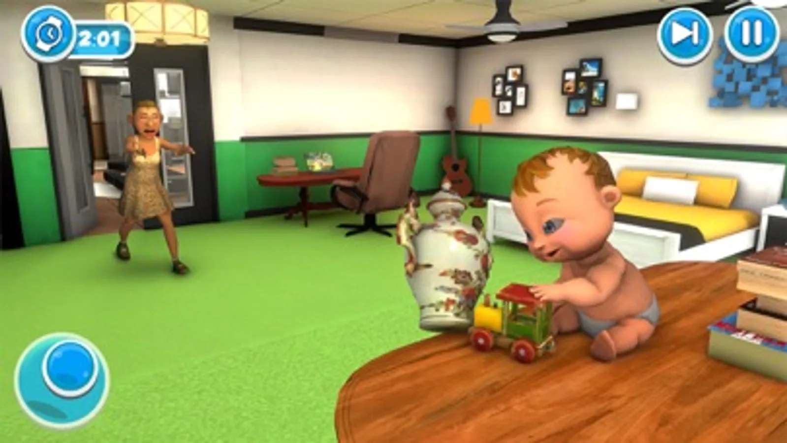 Let's start to play this amazing brand new game of virtual family. Be the baby sitter and doing some naughty acts when home was alone. Your first step is to put head phones to your sleeping sister ears and increase the bass of music. Enjoy to break the side lamps and decor vase. Recall your childhood memories by open the kitchen sink taps and destroy all virtual mother vegetables & fruits that are located in refrigerator. Be the naughty baby and break multiple home decor things before your virtual mother come back.