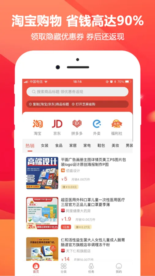 海量大额优惠券让你领到手软,分享优惠让你全年无休省钱。真正让你实现购物省钱,分享赚钱!