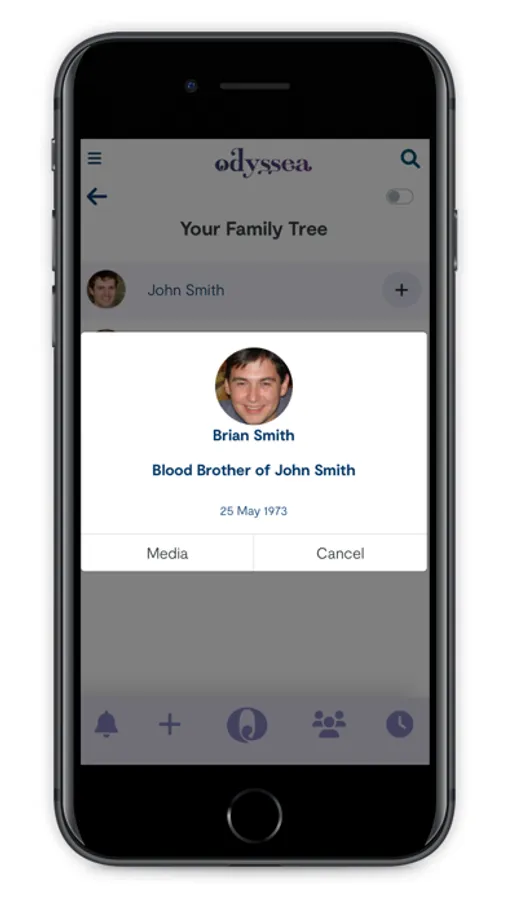 6. What will the branches of your tree look like. Add a branch and walk through their memories with the My Odyssea builder. Add your own journey with the people on your tree with memoirs and media. Create your profile of your whole life and let people see who you really were. What was you favourite song, favourite place, your first steps all showing the person you became. Leave your legacy.