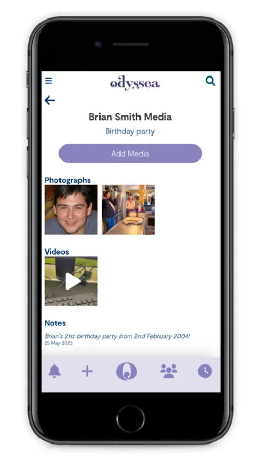 Odyssea lets you be with the people you love most through digital media, at every important event through out life. You can be there sharing the moment with friends family and work colleagues. Record your life from the moment you open your eyes to the moment they close you are creating memories that define you create your Odyssea profile to leave a legacy for generations to come. Link your past present and future with the Odyssea family tree use our intuitive branch system to record memoirs and share digital media to show your amazing relationships and what they meant to you add their Odyssea profile and complete the picture in a hundred years from now what will your story tell.