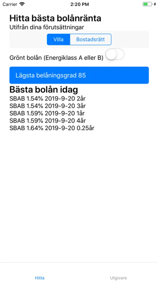 Du kan snabbt och enkelt hitta den bästa bolånränta utifrån dina förutsättningar. Få förslag i real tid, direkt, utan att behöva gå igenom jobbiga processer.