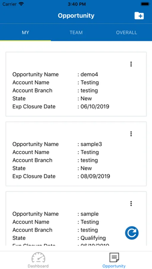 User can view customer status in dashboard , user can create the opportunity and user can able to view list of opportunities in opportunity screen.