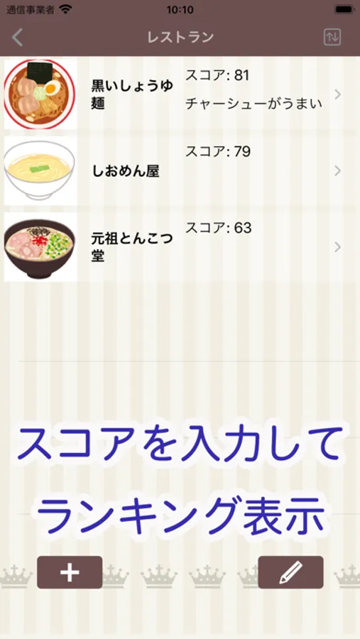 スコア順に並べ替えてランキング表示もできる!