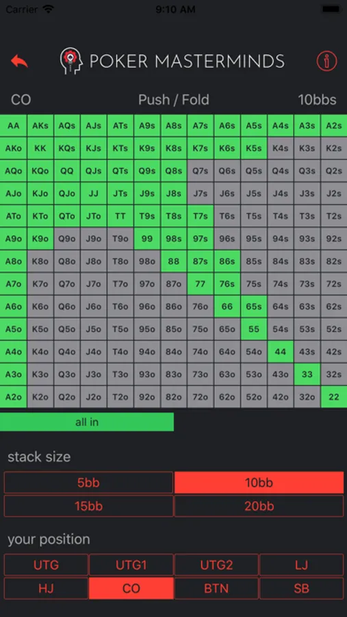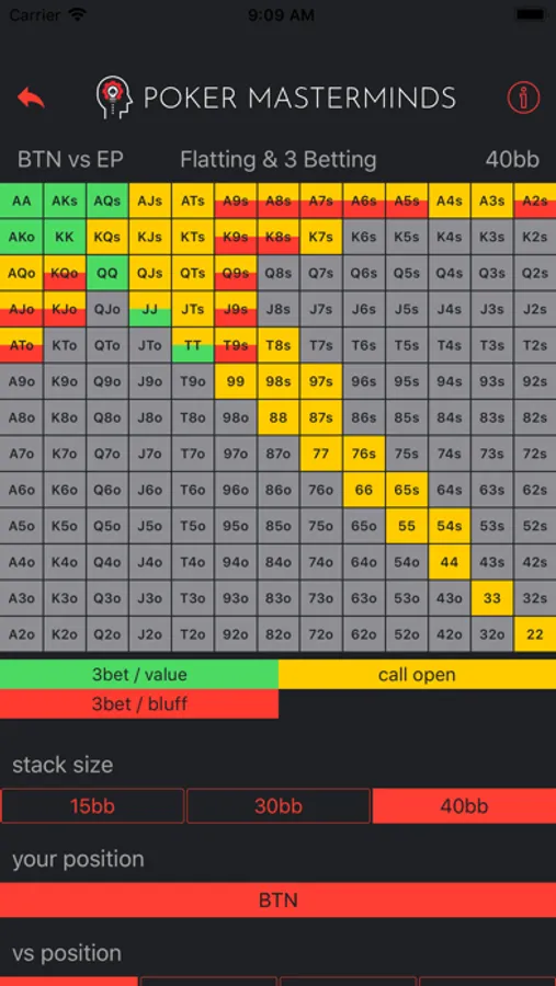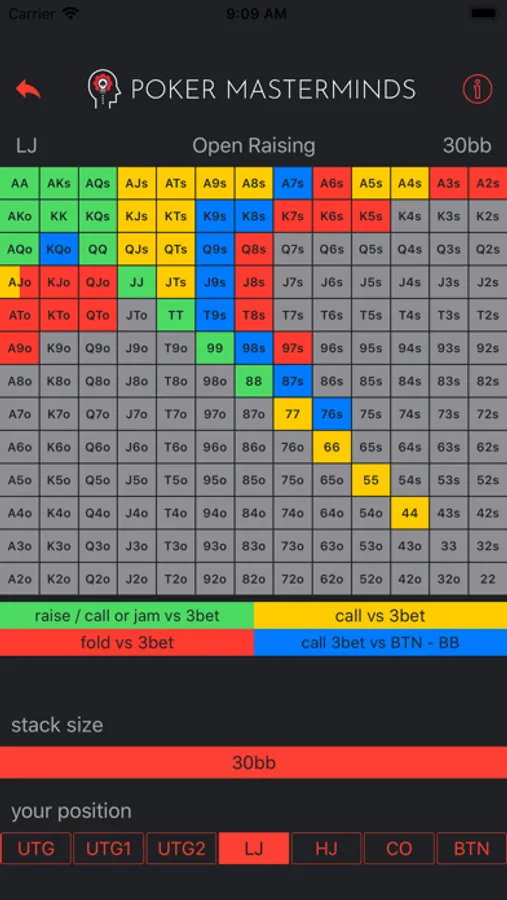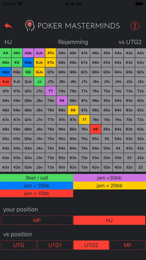 The Preflop Advantage contains easy to navigate and read, color-coded charts which makes it the perfect companion to live play whether you are playing in a live event or playing online. Check your ranges instantly and see if you made the right decision.
