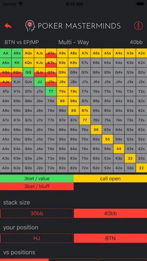 The Preflop Advantage Lite is a limited version of The Preflop Advantage. It contains a limited amount of preflop ranges with the intention to give you an idea of what you can expect in the full, paid version of The Preflop Advantage. The paid version has more than 600 ranges for 9 different preflop situations.