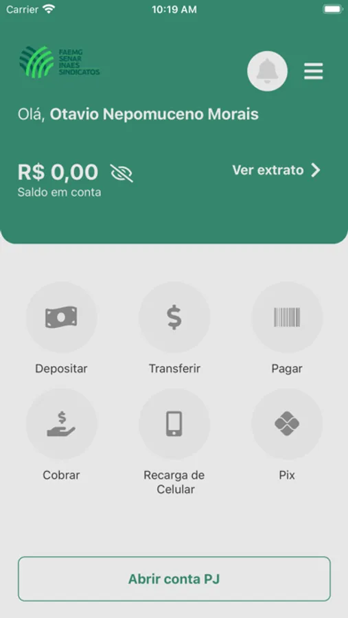 Ao criar a sua conta, você terá acesso a todos os serviços financeiros, tais como extrato, pagar contas, e cobrar alguém.