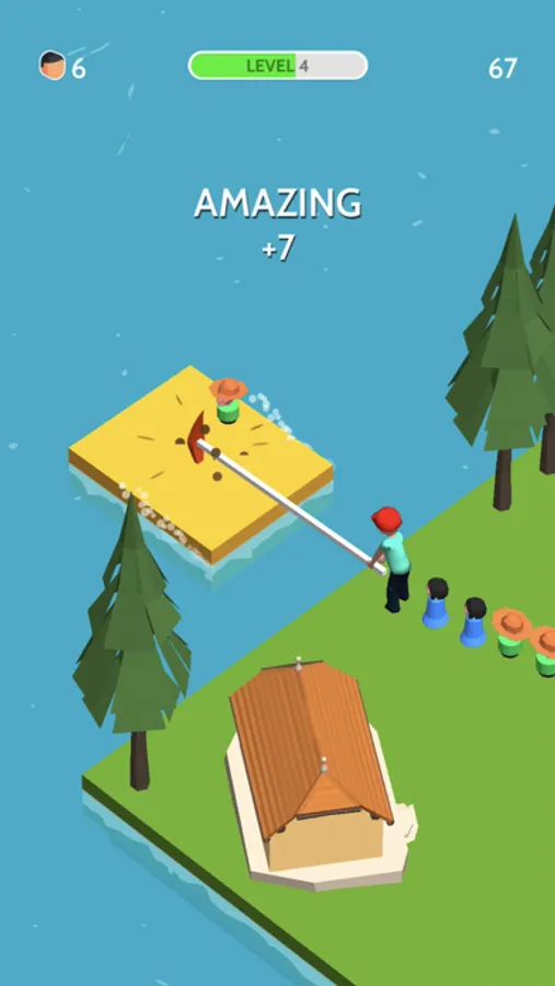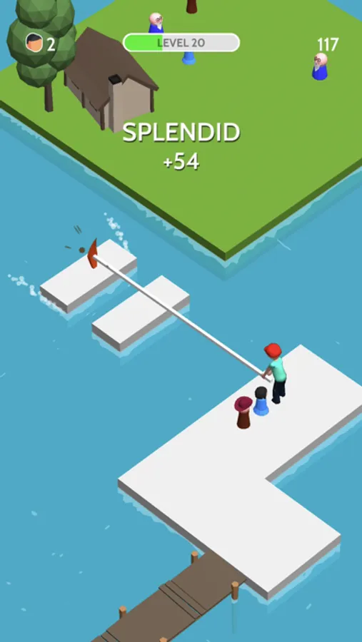 Tap and hold to stretch your Axe and release to place. Stack the floating rafts and build a way.