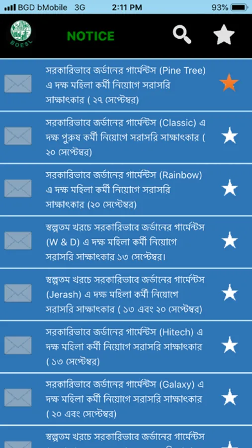 > Updated notices and information with ‘Mark as favorite’ and search facilities