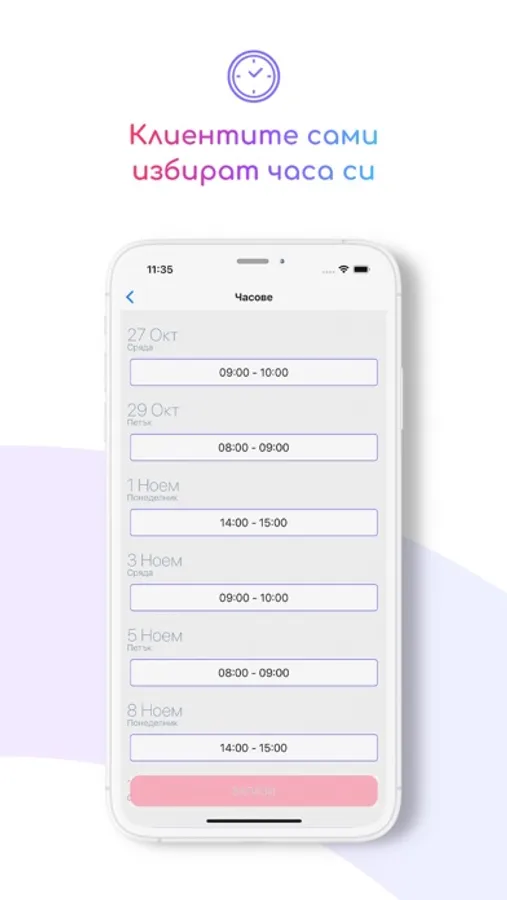 Cindy дава достъп на клиентите до календара ти, за да изберат сами най-подходящия час, а когато денят наближи, получават и напомняне за часа си, за да няма разминавания.