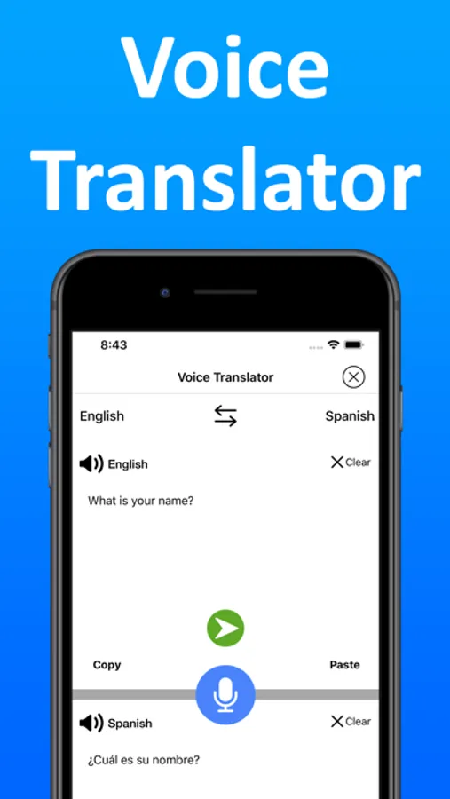 Speak to translate. Speak anything you want to translate and get immediate translation. Voice translation is very helpful for travel around the world and easily communicate in any country