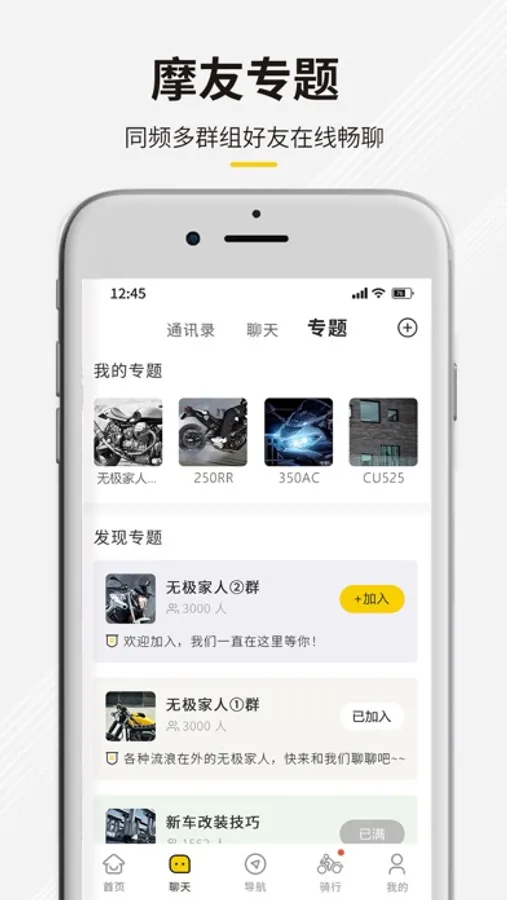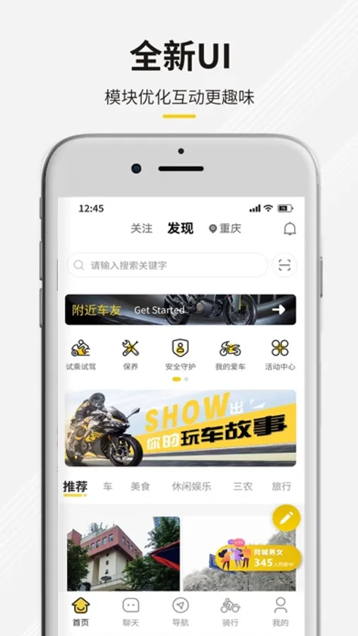 聚集海量用户的玩车感受、用车攻略、摩旅分享、游记分享、景点美食等实用资讯,让你足不出户尽揽精彩;