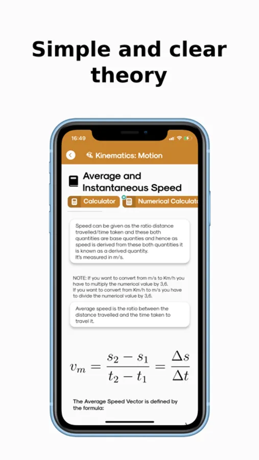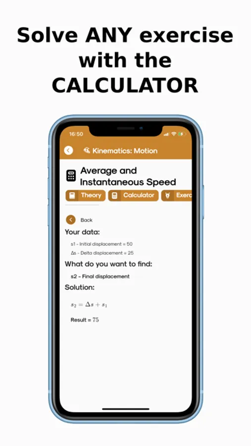 PhysicsMaster Pro allows you to acquire the basics of Physics and solve problems thanks to the CALCULATOR function on the practical pages of the app!