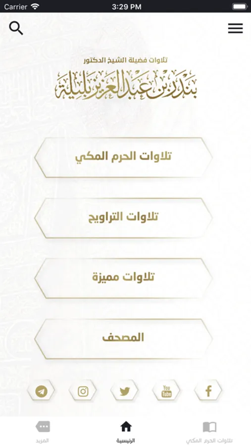 ننشر فيه تلاواته من الحرم المكي مرتبة حسب الأعوام والشهور و قائمة خاصة لتلاواته المميزة والمصحف الكامل وغير ذلك ..