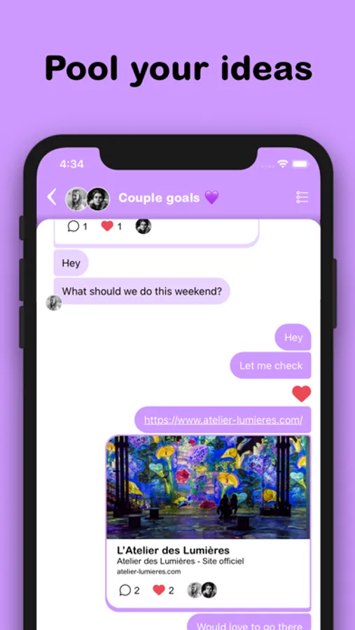 Pool Messenger is a messaging app combined with a shared list where you can pool your ideas of things to do together.