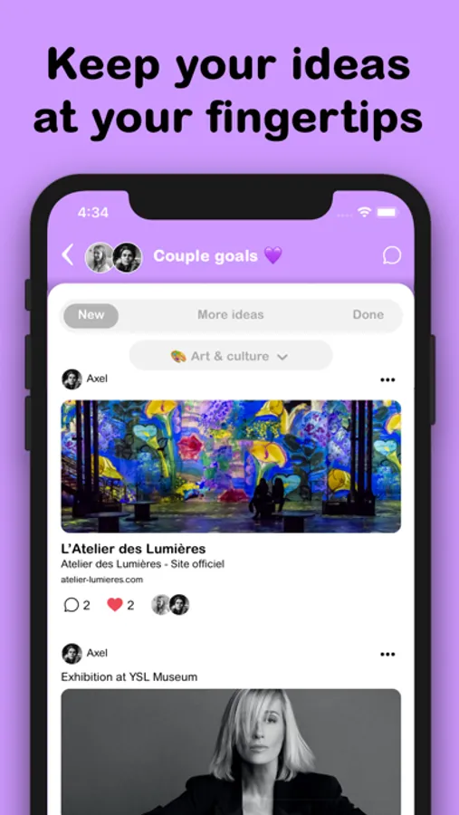 All your ideas are saved and sorted in one place so you don't need to scroll your notes or chats history anymore.
