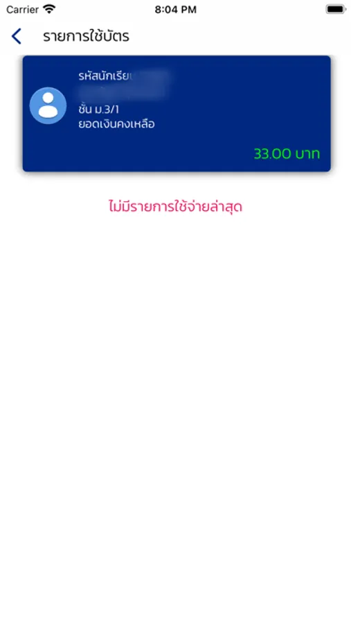 - เชื่อมโยงกับบัตรนักเรียน แสดงการใช้จ่ายเงินในโรงเรียน