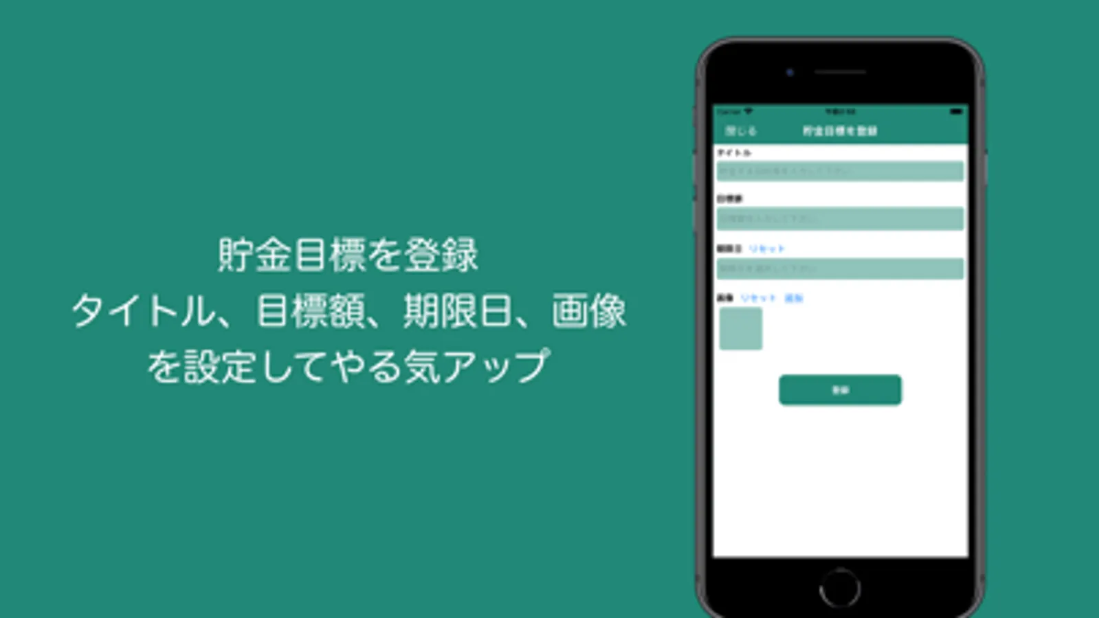 ・作成した貯金目標に貯金できます。(金額、日付、メモを設定できます)
