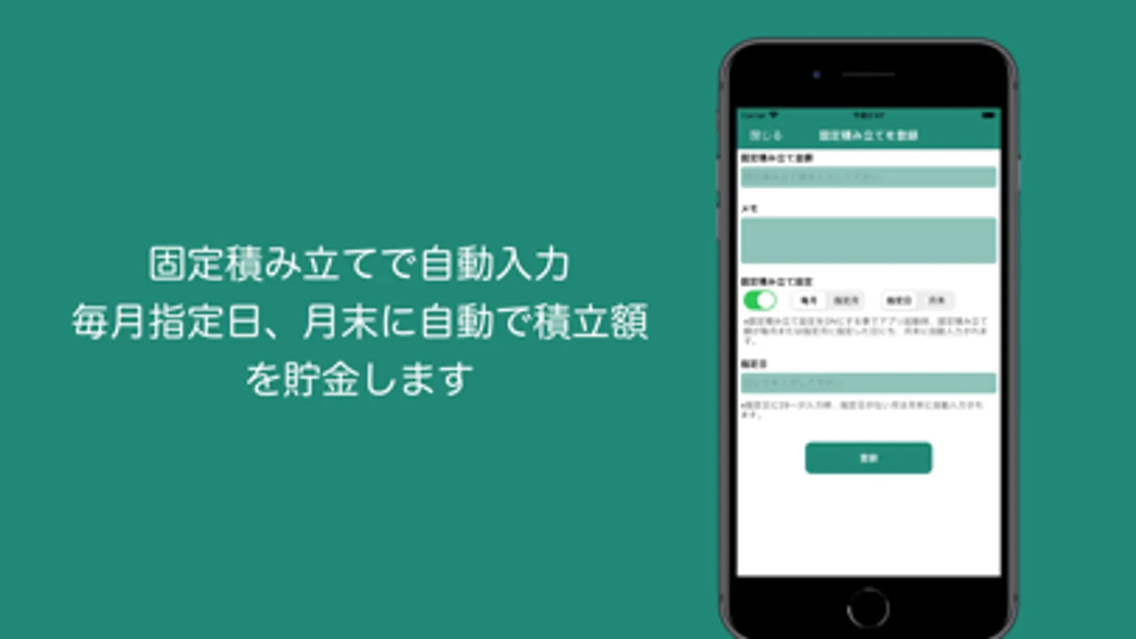 「固定積み立て」を設定する事で、貯金額入力操作を自動化します。
