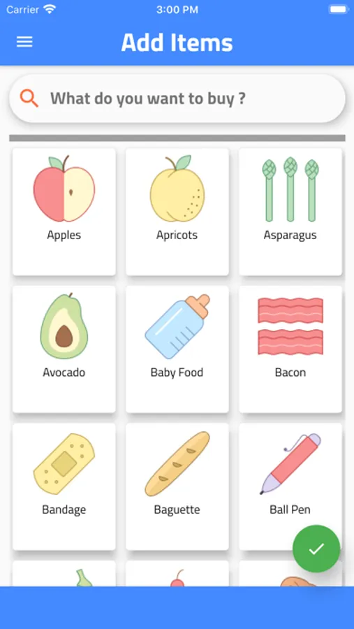 Check the items in your list and remove them easily by just tapping on them when purchased in the shop.