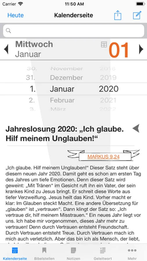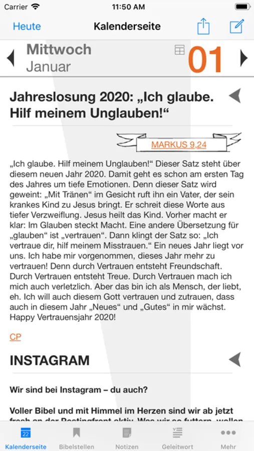 Bibellesen macht Spaß mit der Bibellese-App von „START in den Tag“. Du findest darin für jeden Tag des Jahres einen anregenden Bibelimpuls und verständliche Auslegungen. Durch die Hintergrundinfos kannst du neu in die Welt der Bibel eintauchen und die alten Texte besser verstehen. Und was dir gut gefällt, speicherst du in den Notizen oder teilst es mit Freundinnen und Freunden. Mit dieser App fängt dein Tag gut an!