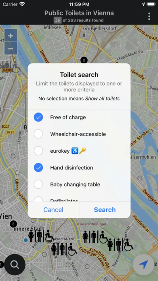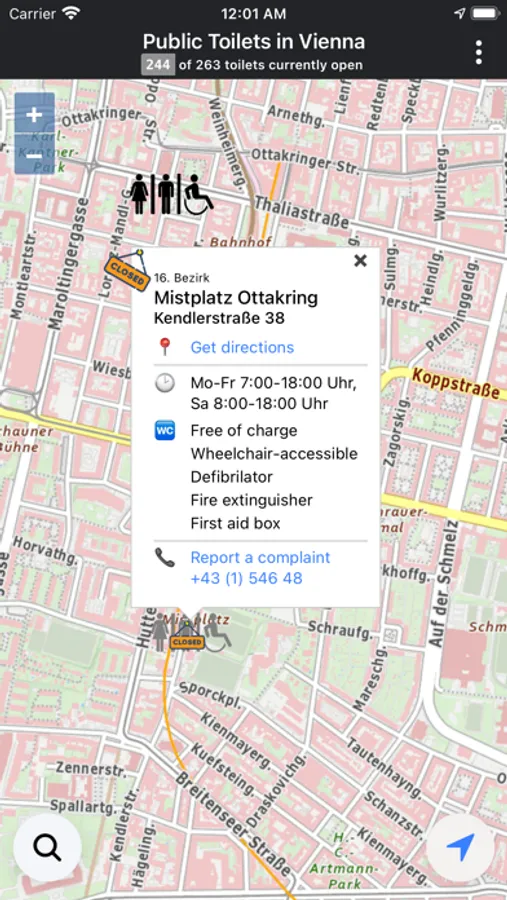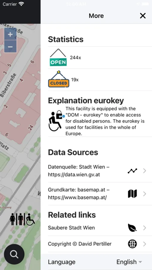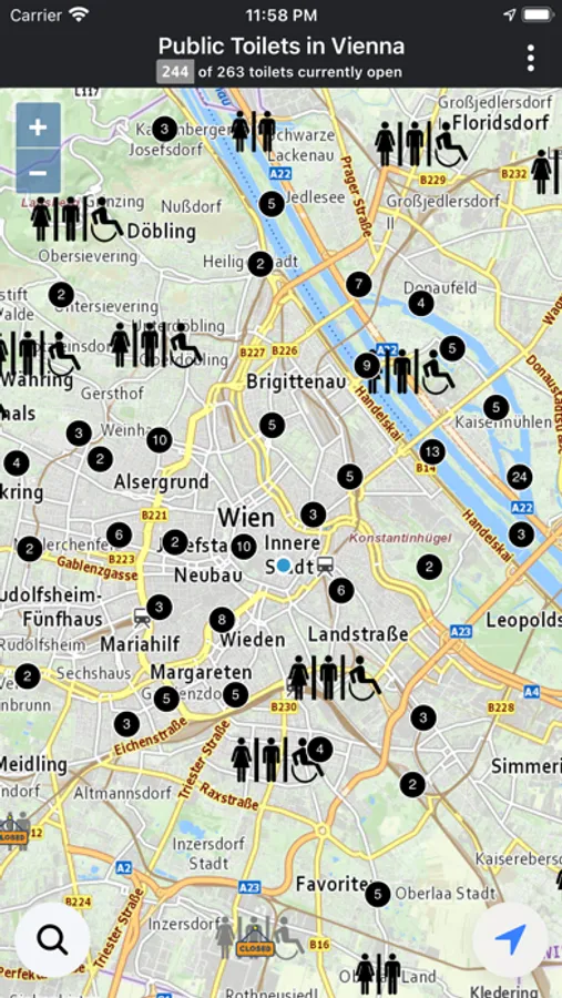 Public Toilets in Vienna shows you all public toilets in your area. The app also pays close attention to the opening times of the toilets and marks open and closed toilets.