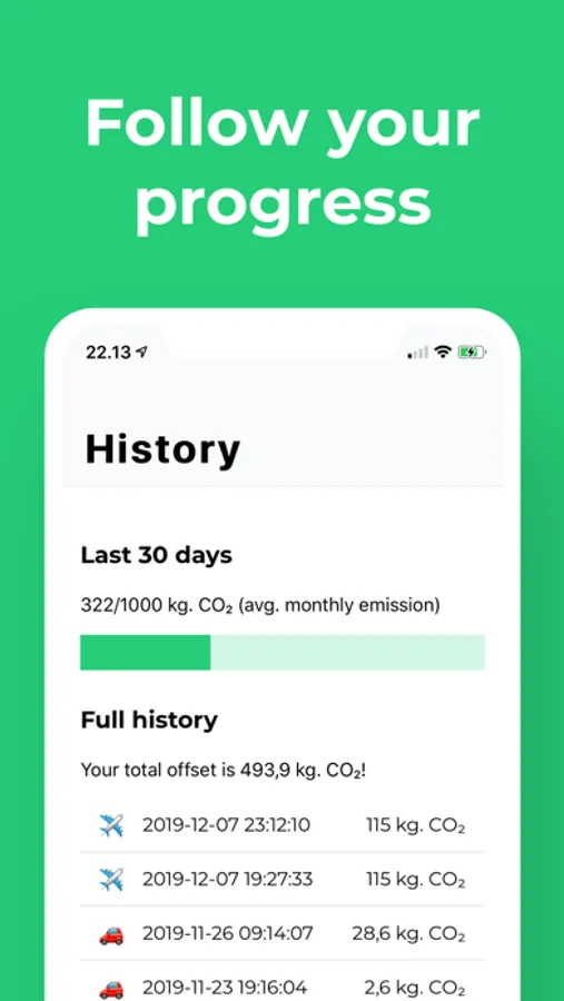 5. Track your progress towards a carbon neutral life with your history of offsets