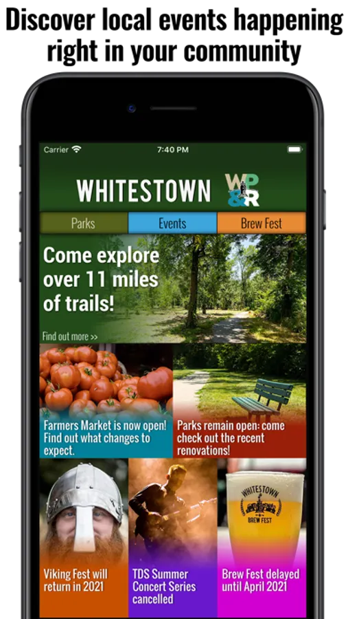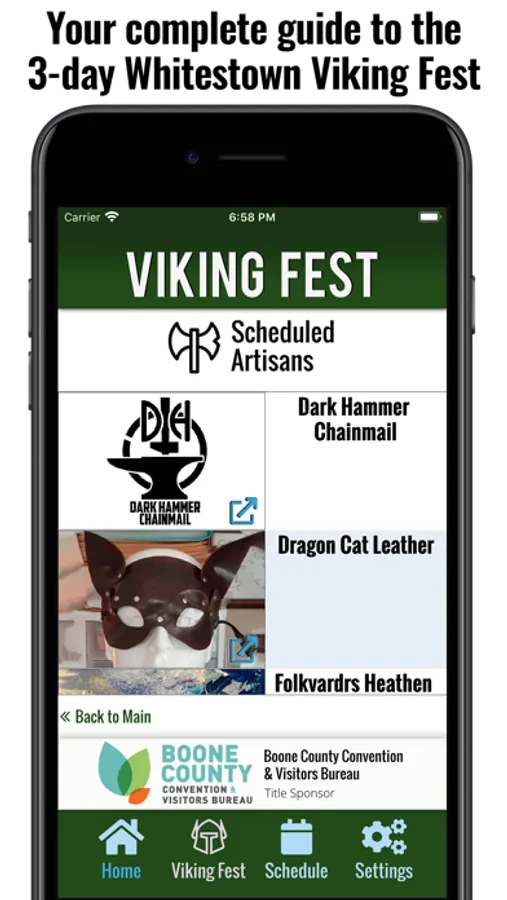 This is also the official app for the annual Whitestown Viking Fest: a 3-day immersive festival celebrating Viking culture. Get the latest information on the food, music, and fighting reenactments scheduled. Plan your day then use the app to set reminders so you don't miss any of the action!