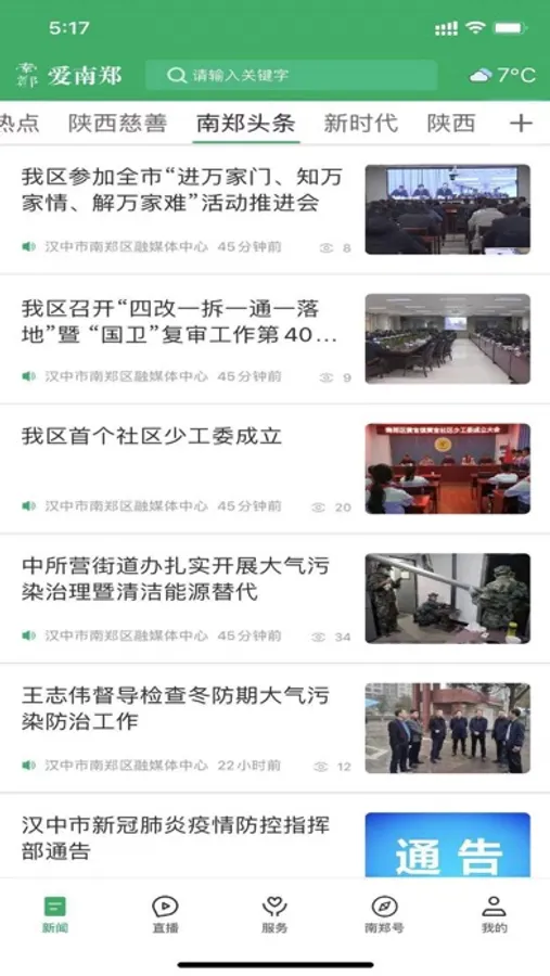 “爱南郑”手机APP作为汉中市南郑区融媒体中心主办的“新闻+政务+服务”综合平台,是权威的舆论宣传主阵地。开设了新闻、直播、电视、广播、服务、“爱南郑”等栏目,整合了区域内网站、微信、微博、短视频等自媒体和部门、镇(办)、社区、村组政务服务资源。用户可通过客户端,第一时间了解南郑政治、经济、民生、服务等方面的最新动态,同时提供各种便民服务,还可参与实时互动,实现“一端在手,尽享智慧”。