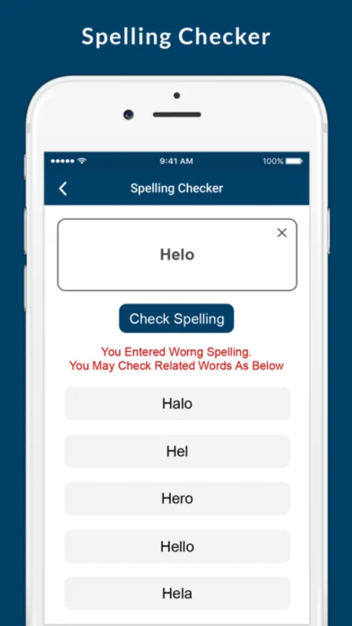 Correct Spelling Checker to easily crate spelling or word in the English language with the use of spelling creation to save time. Everyone knows that "time is money". Select word to set a meaningful word in easily in the English language. According to English dictionary checks & create a word in spelling which you want to make accurate. Create spelling is to make English language learning easy for every type of user to use and cover all types of difficult English language words here. No need to remember difficult spelling in the mind. With spelling correction to get punctuation in your essay writing where to put and to get the new word for the essay use the creative spelling.