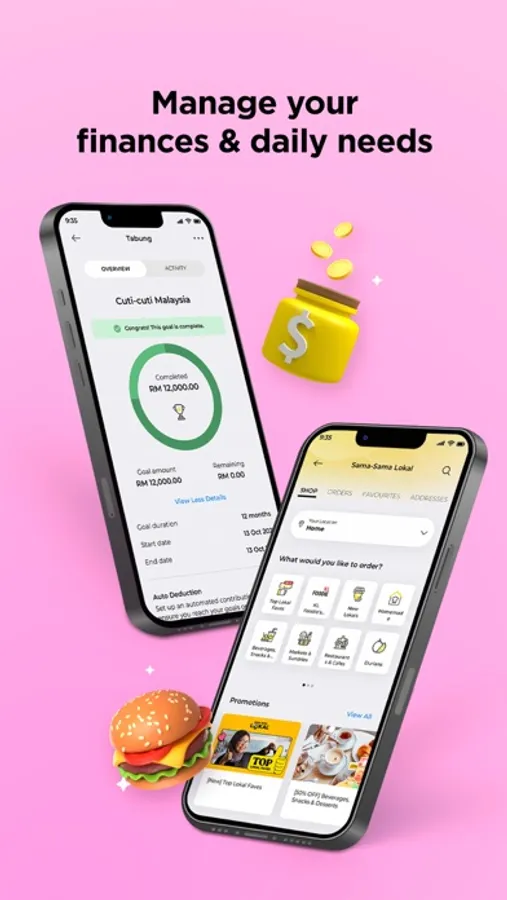 Stay on top of your daily tasks and life goals with the MAE app’s vast array of lifestyle features, like Expenses, Tabung, and Sama-Sama Lokal food delivery.
