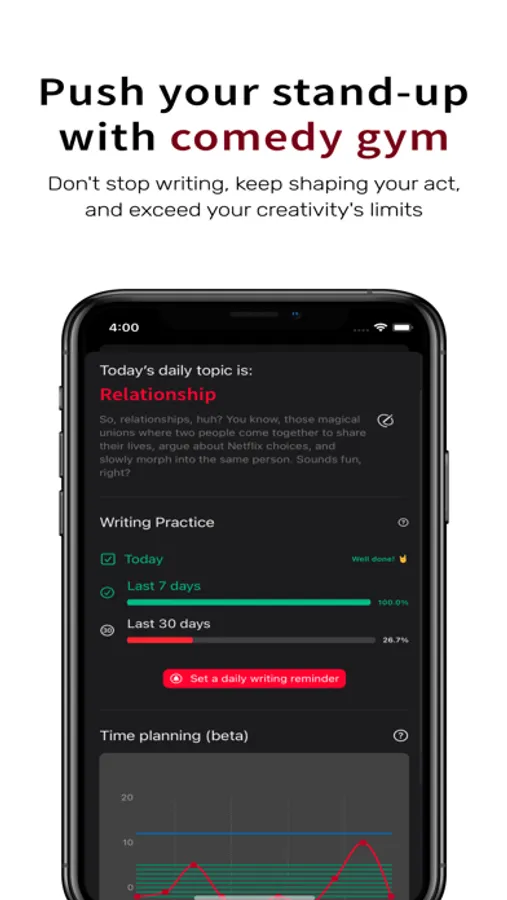 The old days of paper pages on a stool are over! When you’re up there on stage, you can switch to the on-stage mode and have your set ready for your performance. The screen will remain turned on and all black. While you perform, you can swipe right or left to indicate if the joke did well or not so you can come back to it later and reshape it the way you think best.