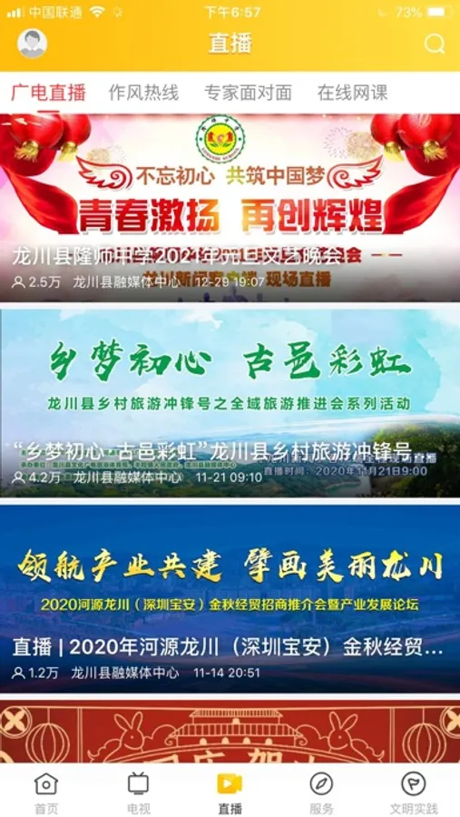 龙川新闻客户端是龙川广播电视台适应新形势发展,基于移动互联网平台着力打造的以新闻资讯、政务服务、社区服务于一体的融媒平台。