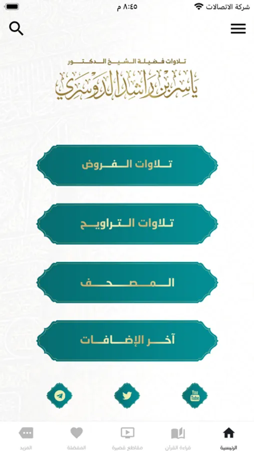 تطبيق تلاوات إمام الحرم المكي الشيخ د.ياسر الدوسري