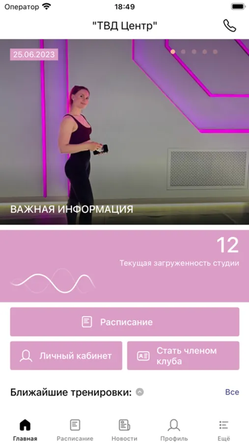 С помощью приложения вы можете следить за новостями, расписанием клубов, оперативно получать информацию об изменениях в расписании и специальных предложениях