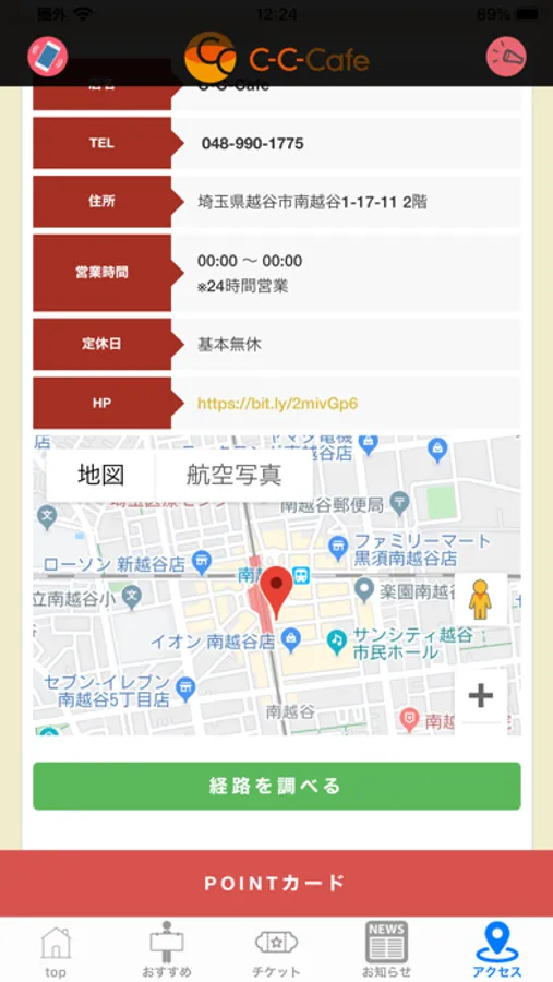C-C-Cafeアプリは、埼玉県越谷市南越谷にあるネットカフェ・ネットルームのお店「C-C-Cafe(シーシーカフェ)」の公式アプリです。