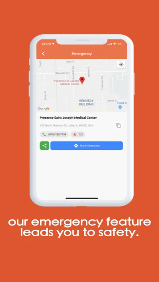 Find places nearby quickly and easily. Quick Links to your nearby hospitals, hotels, restrooms, gas stations and more! One-click access to your nearby emergency center.