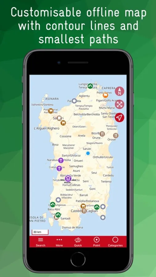 Customisable offline map from Openstreetmap with contour lines in which even the smallest paths and trails are shown.