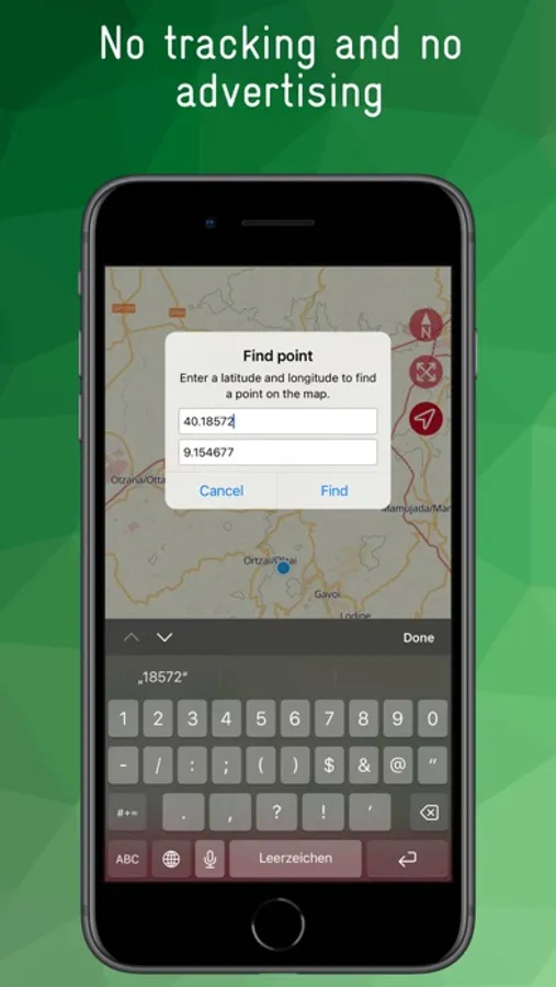 A location function shows the current position, the app is ad-free and there is no tracking.