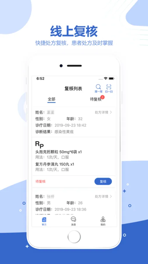 针对处方流平台的处方,药店药师进行复核检查,审核通过后患者可以到药房进行拿药。药店药师审核保证患者用药安全性和合理性。