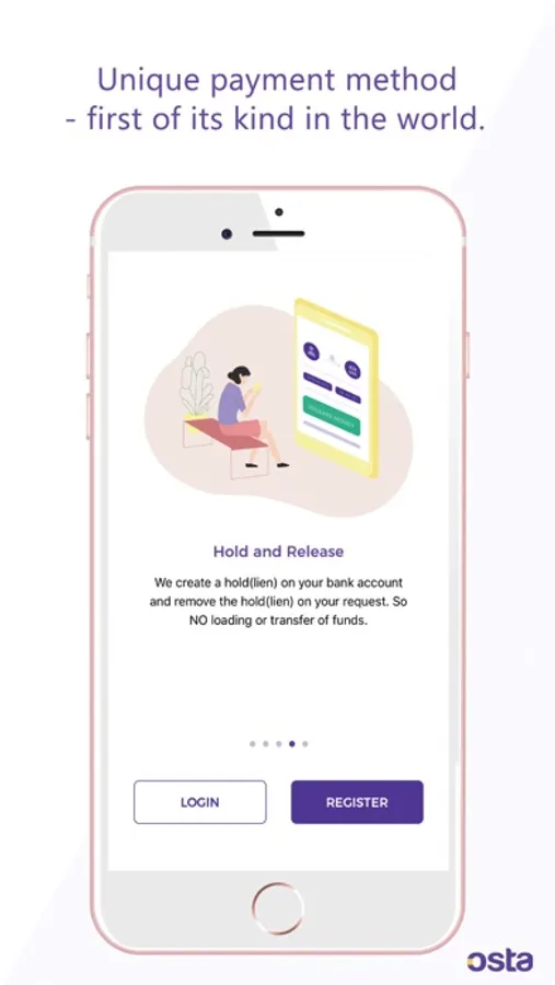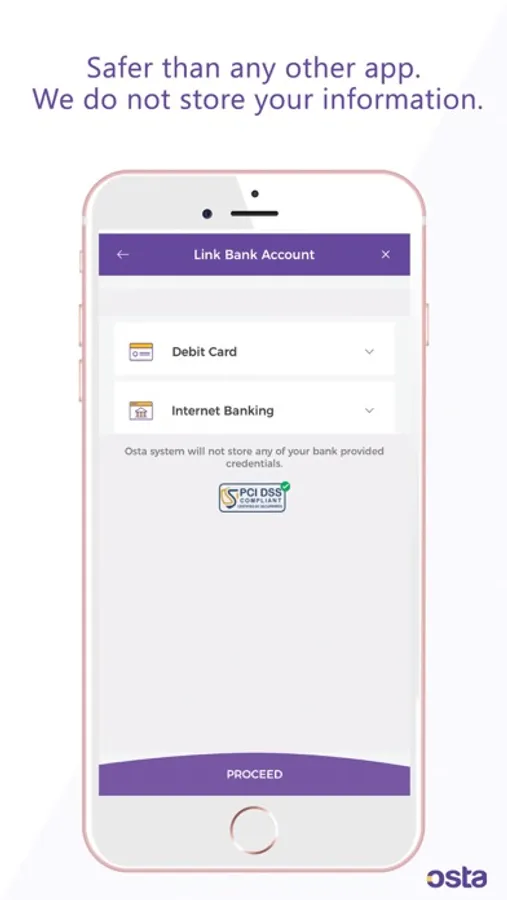 Osta uses secured payment technology and empowers customers to decide the value and validity of the Osta number. Osta uses lien (hold) marking instead of transfer of funds to wallets or direct debit to account .