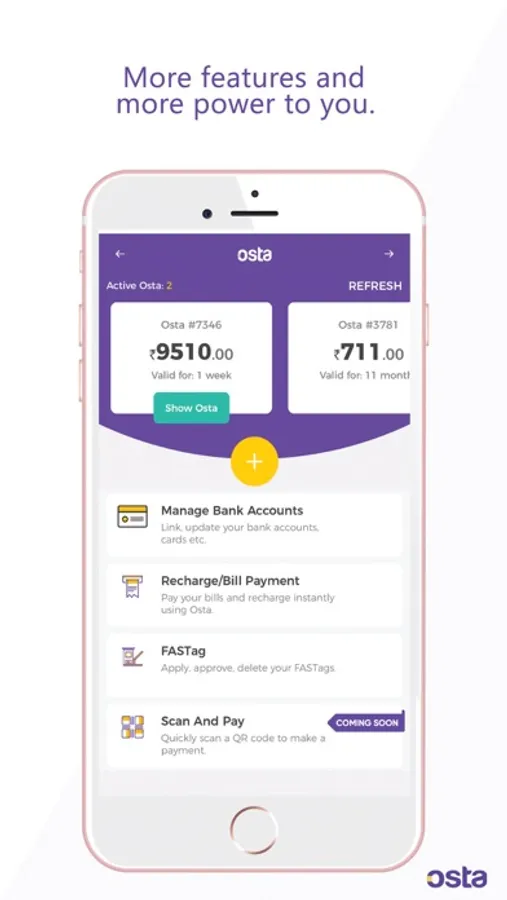 One stop shop: Osta would work with Bank Accounts, Payment Banks, Credit Cards, Wallets and more. Also, you can use Osta for: